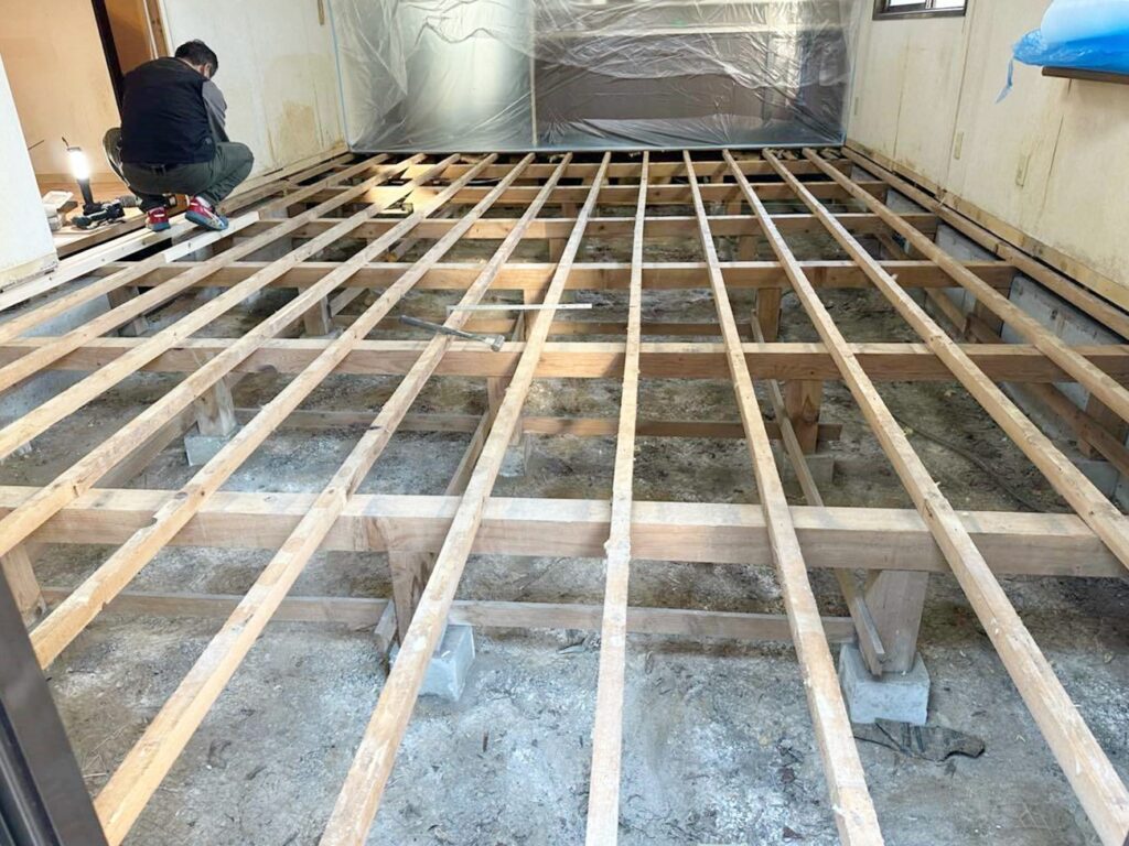 リビングの床を下地から