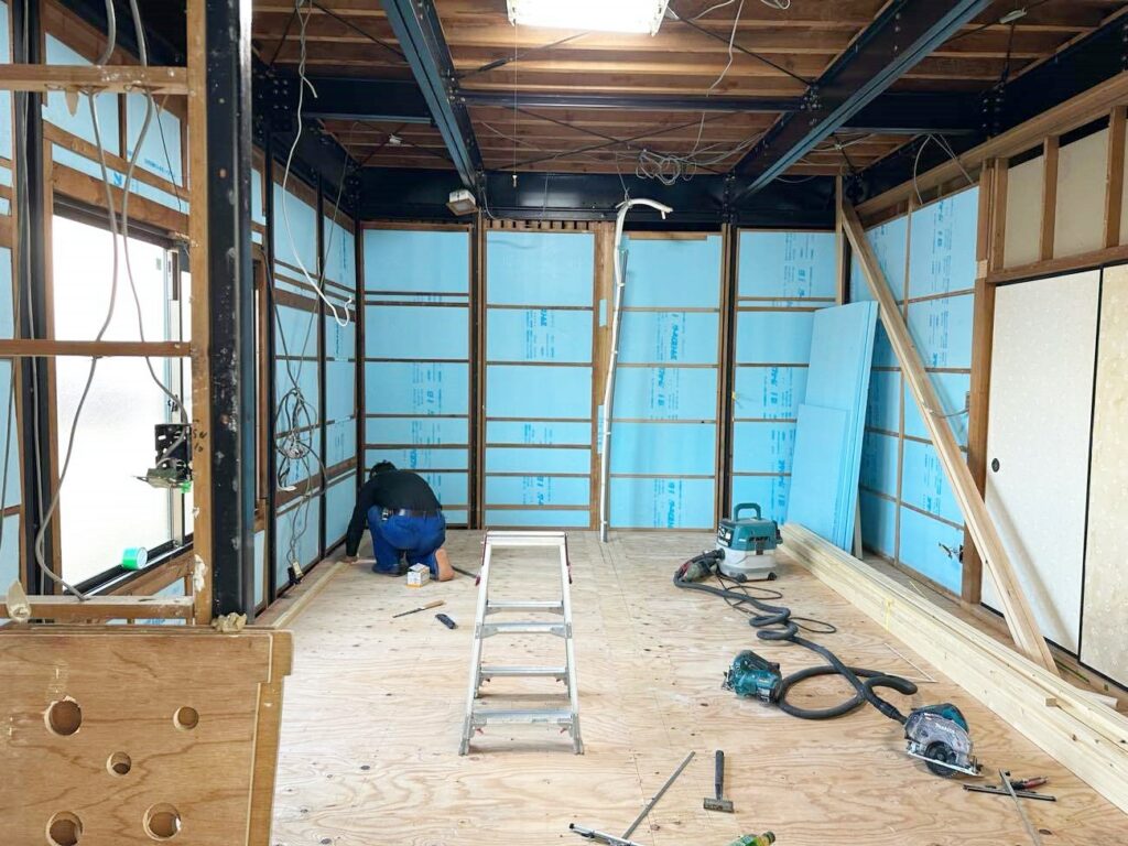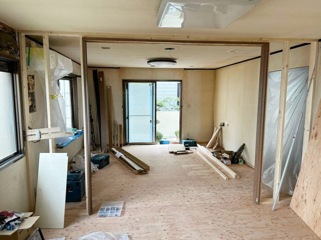 LDK解体、下地施工中。