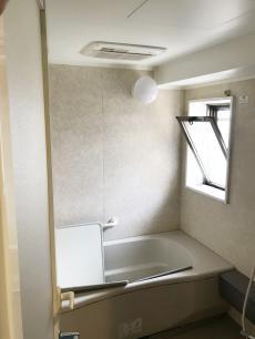 | 明るい床色で浴室全体が明るい印象になりました。照明はダウンライトでお洒落でスッキリとした空間に仕上がりました。 | TOTOのほっカラリ床はやわらかく、断熱構造になっているので冬場の一歩目もヒヤッとしません。 |