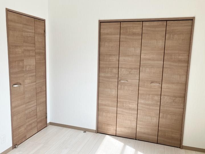 室内ドア・クローゼット扉の柄を揃え、巾木も同系色を採用されたことで統一感のあるお部屋になりました。