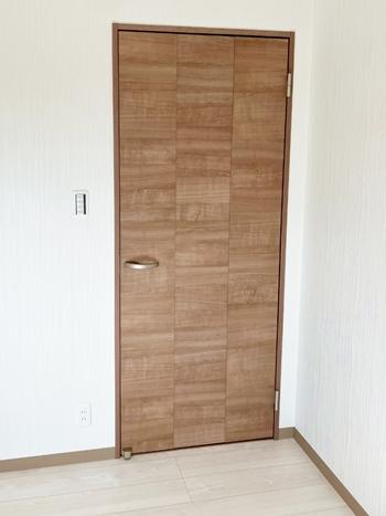 クローゼット扉を取り替えました。大建のハピアシリーズ、お色はトープグレーです。 室内ドアを取り替えました。こちらもクローゼット扉と同じお色です。