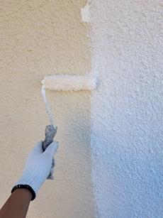 | 外壁上塗り(1回目)施工中 | 外壁上塗り(2回目)施工中 |