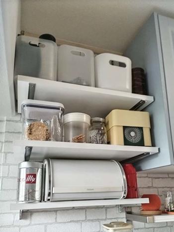 吊戸棚も大工さんの造作です。 幅にピッタリ収まり、 収納力がアップしました。 |