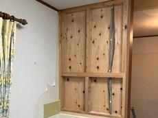 | 壁と天井の下地処理・補強を行っていきます。 | 天井下地施工。 | 壁下地施工。 |