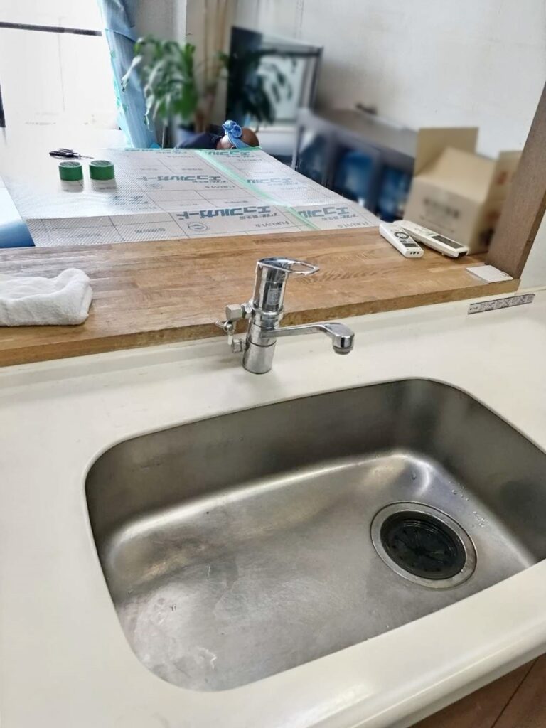 吊戸棚と袖壁を撤去し、開口部を拡張。