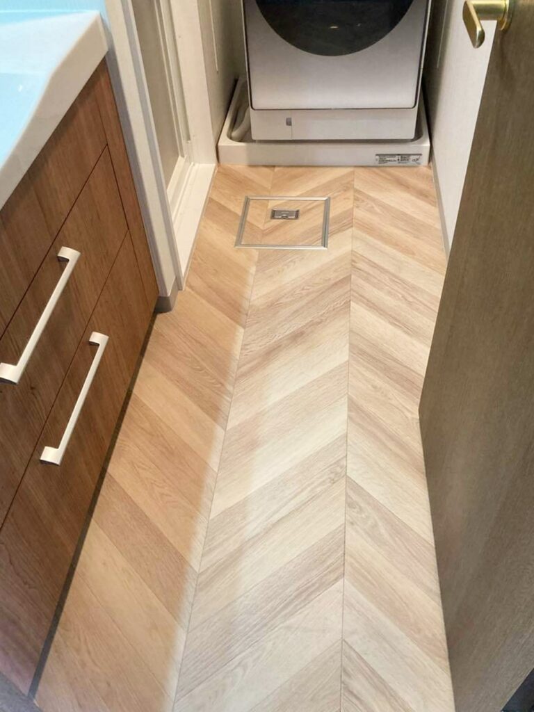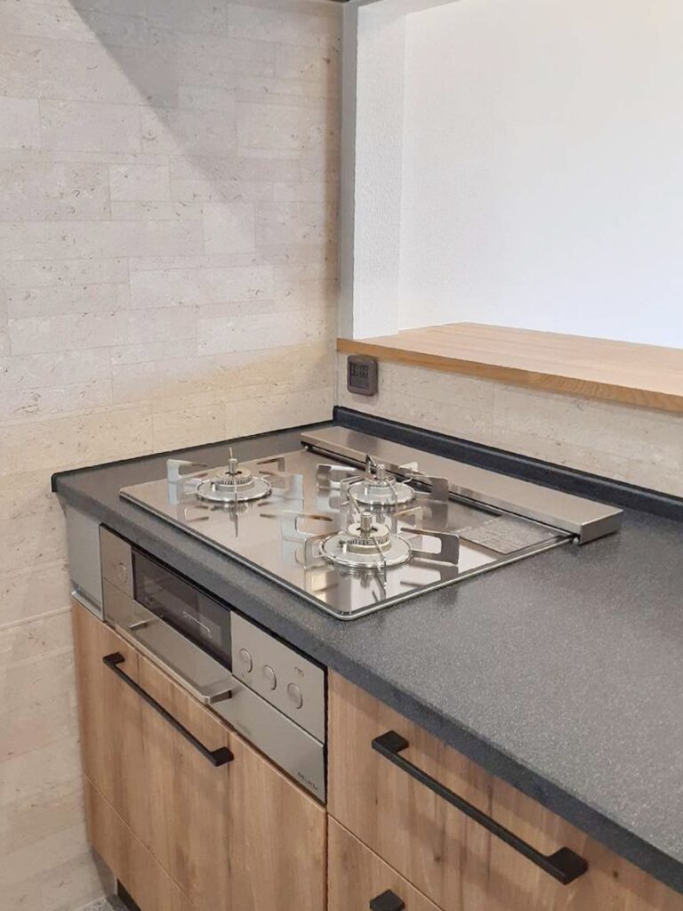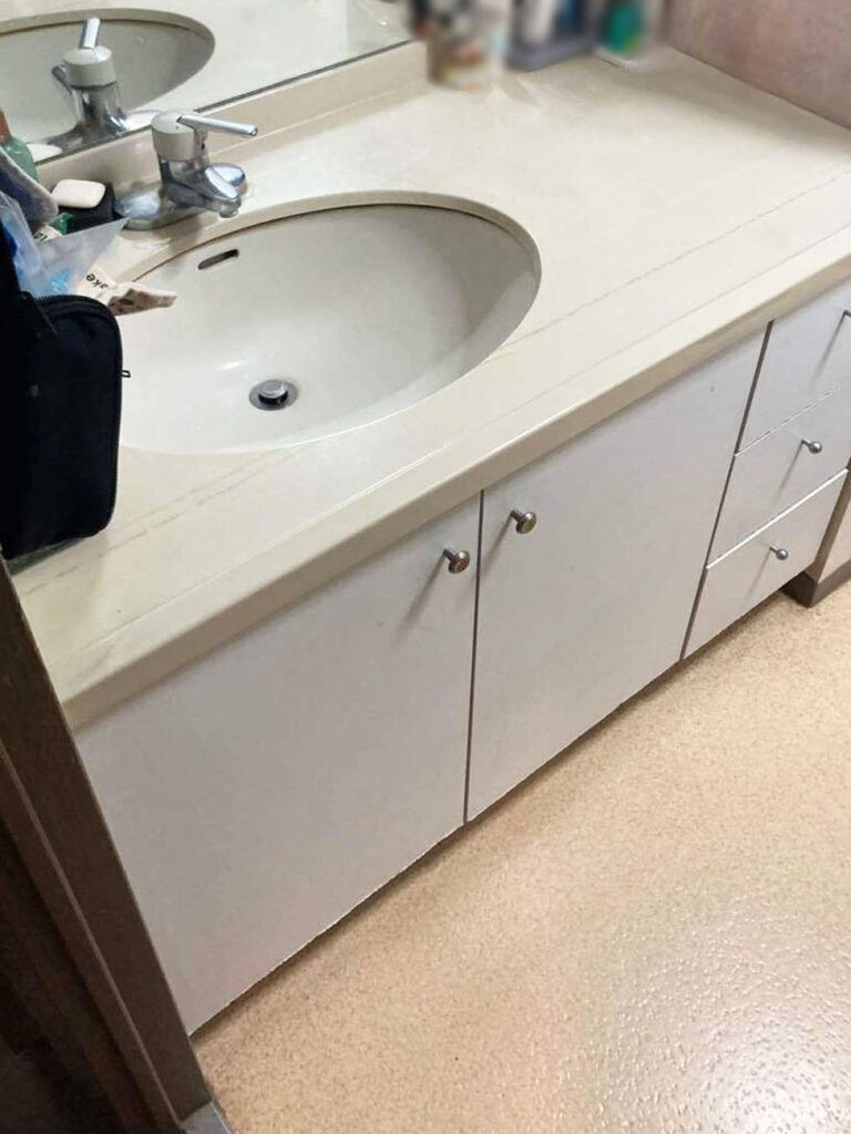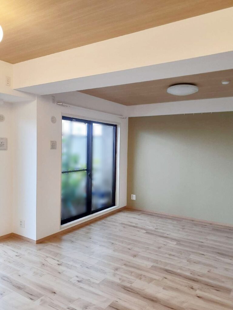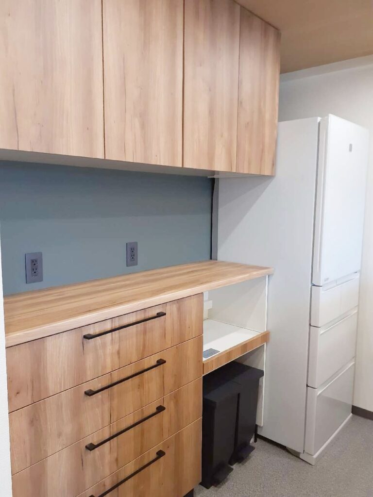 【キッチン】 キッチン・カップボード取替 袖壁撤去、カウンター取替、カウンター下収納取替 壁・天井クロス貼替、クッションフロア貼替 巾木取付、照明取替 【リビング】 壁・天井クロス貼替、床フローリング上貼、巾木取付 ピクチャーレール取付、カーテンレール取替 【和室】 洋室にリフォームし、リビングと繋げる 【洗面所】 洗面台取替、埋込収納撤去 壁・天井クロス貼替、床クッションフロア貼替 ソフト巾木取替、洗濯パン・洗濯水栓・分電盤取替 洗濯機上可動棚取付 【トイレ】 トイレ取替、壁・天井クロス貼替 床クッションフロア貼替、換気扇取替 【洋室1】 カーペット→フローリングに張替、壁・天井クロス貼替 巾木・カーテンレール取替 【洋室2】 壁・天井クロス貼替、カーペット→フローリングに張替 カーテンレール・巾木取替 【廊下】 壁・天井クロス貼替、床フローリング上張 土間フロアタイル貼り 【その他】 給湯器取替、給水・給湯・追い炊き配管取替 |