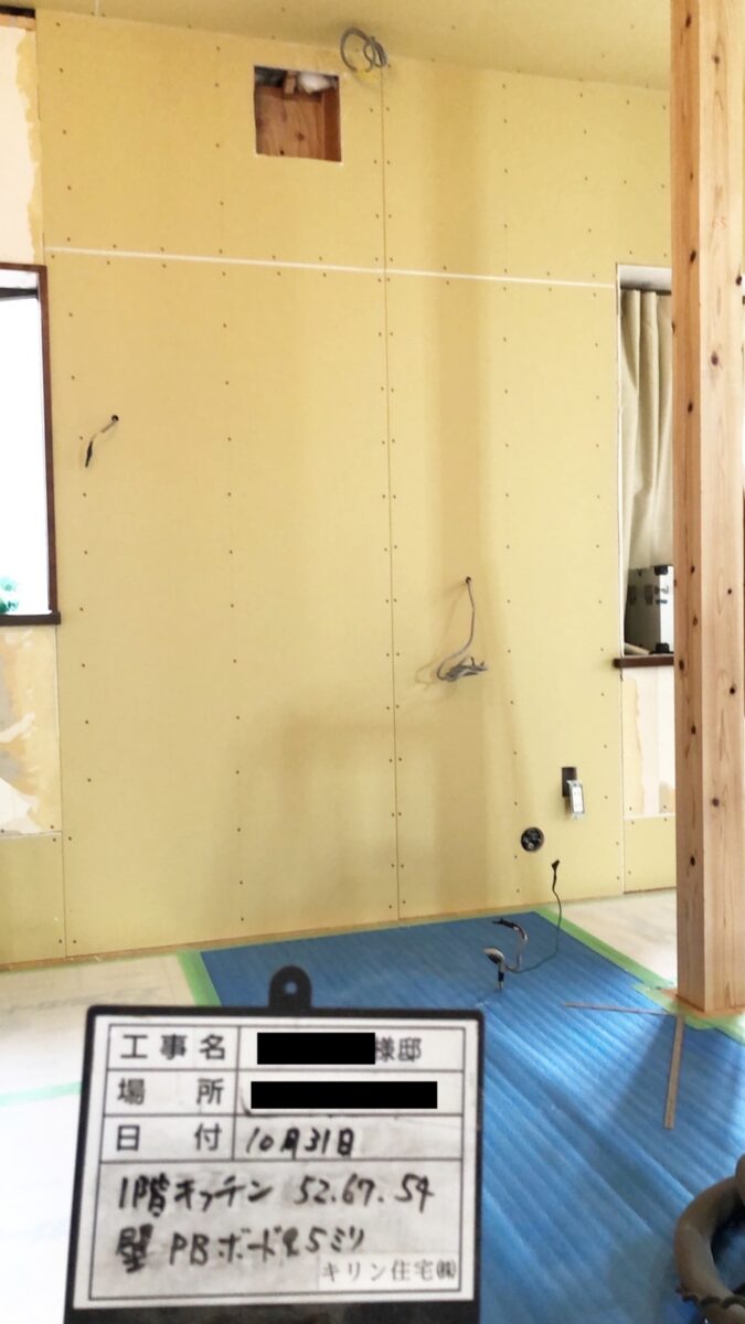 壁の下地・補強のため、柱を設置しました。
