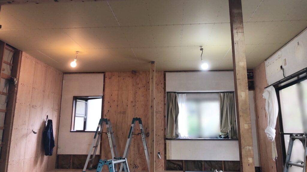 天井にボードを貼りました。