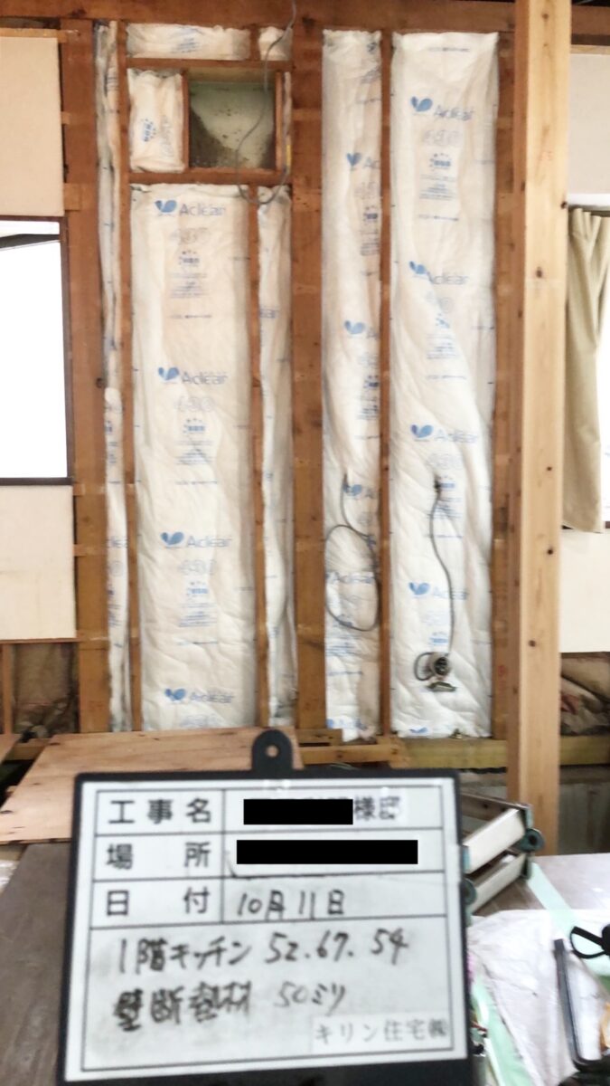壁に断熱材を入れました。