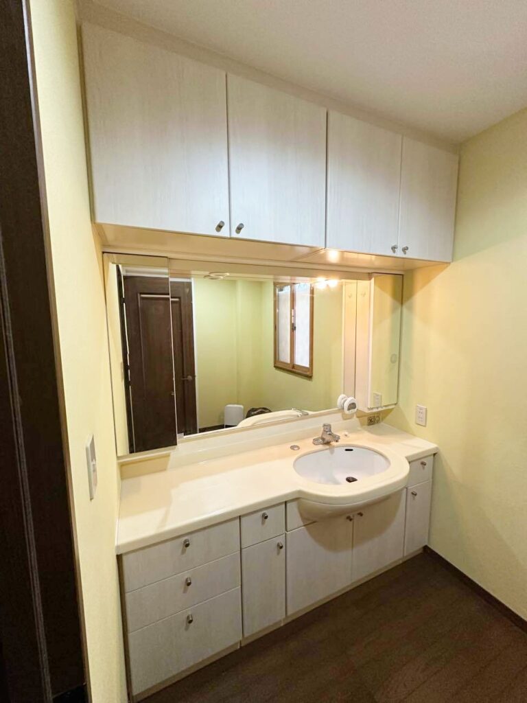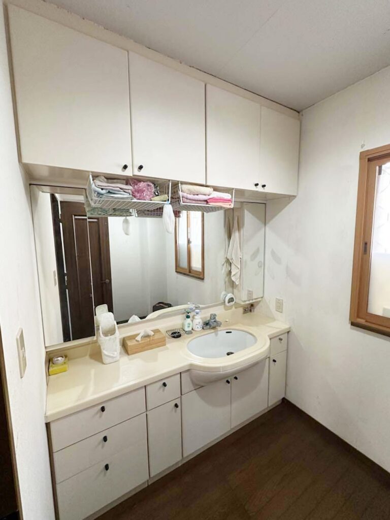 同時に洗面所の壁紙と戸棚のリメイクを行い