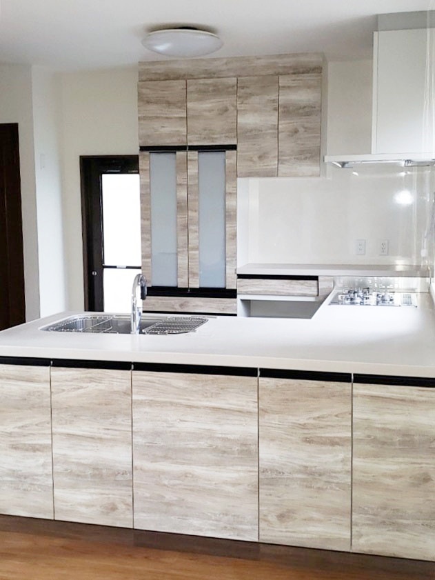 【キッチン】 クリナップ ステディア L型 扉カラー:ミルフィーユチーク 【背面収納】 クリナップ ステディア 【洗面台】 LIXIL ピアラ 【トイレ】 TOTO ピュアレストQR+アプリコットF1 【和室建具】 大建 ハピア吊り戸 【洋室建具】 大建 ハピア L型コーナー間仕切り 【サンルーム】 LIXIL サニージュF型 |