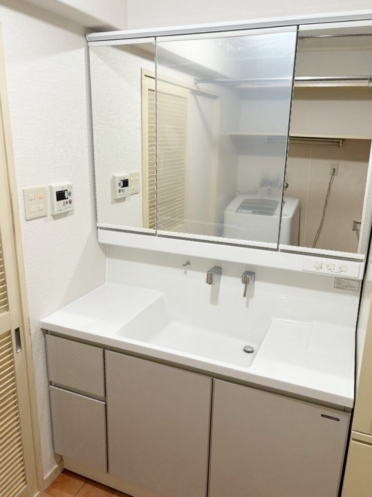 【浴室】 タカラスタンダード グランスパ 1116サイズ アクセントパネルカラー:ロッシュベージュ 【洗面台】 タカラスタンダード ファミーユ 扉カラー:ライトグレー 【キッチン】 日立 IHヒーター N8Tシリーズ |